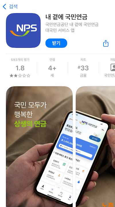내곁에 국민연금 앱 설치 화면 - 앱스토어에서 내 곁에 국민연금 설치