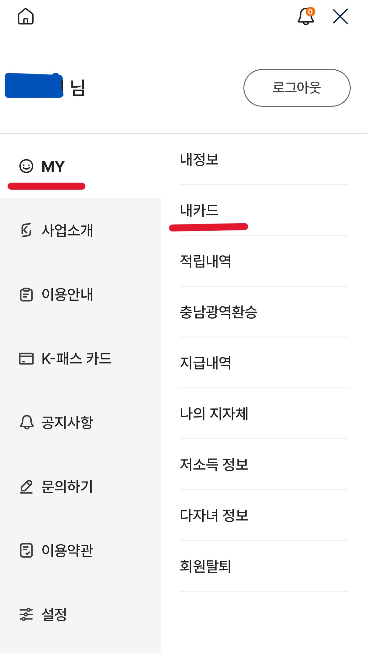 K-패스 앱 카드 등록 화면 : My- 내카드